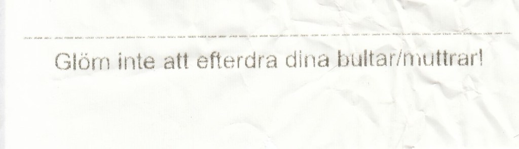 På kvittot från hjulskiftet påminns jag också om att efterdra ”bultar/muttrar”: