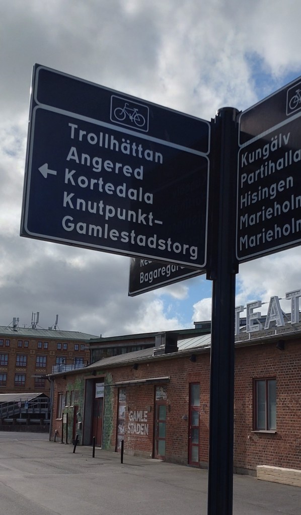 Nedan ett exempel på hur det ser ut på en cykelvägvisare: