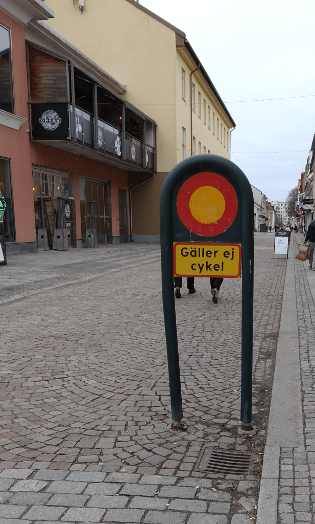 Låt oss krångla till det med ännu en typ av skyltning, nämligen ‘Förbud mot trafik med annat motordrivet fordon än moped klass II’ (C3), som på Södra Hamngatan: