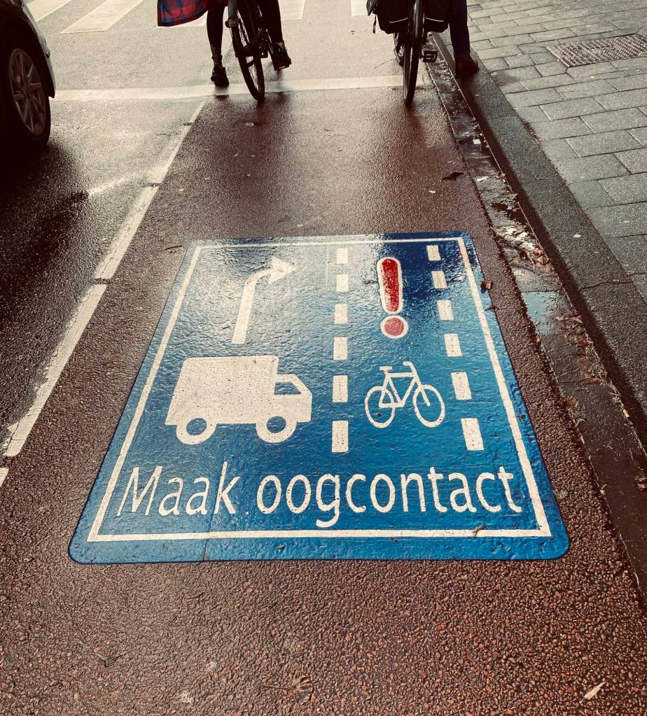 Men talar vi nu om samma typ av ögonkontakt som den vi utövar i trafiken? Är syftet detsamma? Nej? Ska man kanske helt enkelt signalera att man har uppmärksammat trafikanten och kanske att man är intresserad av vad den har att kommunicera? Ska man visa att man inte vill något illa? Signalera sinnesnärvaro? Ska det se ut som att man är fokuserad på trafiken (eller åtminstone på personens ögon?)?