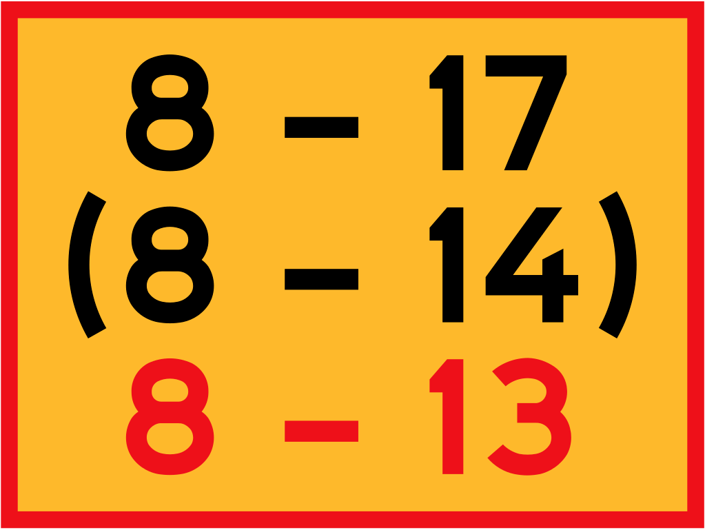 Svarta eller vita siffror inom parentes avser vardag före sön- och helgdag.